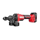 - From grinding, sharpening, and polishing metal to cutting tile and more, the SKIL 20V Brushless 4-1/2 In. Angle Grinder balances power and ergonomics to tackle a variety of DIY tasks. The cordless angle grinder features a digital brushless motor that delivers up to 10,000 RPM. It also features a three-position side handle with onboard wrench storage for quick handle adjustments for a variety of working positions. Its tool-free guard change features a one-handed release for quick adjustments of the guard position, while a spindle lock allows quick and easy wheel changes. A dual function lock switch prevents accidental tool startups and locks on for prolonged use. The cordless grinder is compatible with most 4-1/2-inch and 5-inch grinding wheels (sold separately). The kit includes the battery-powered angle grinder, 20V 2.0Ah battery, 20V 60W charger, grinding guard, wrench, side handle, and 2-in-1 guard.