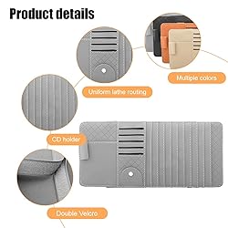 - Specifications: Material: lambskin leather Color: black, beige, brown, gray Size: 13.54 x 6.3 inches Weight: 200g/7.05oz Package Include: 1pc car sun visor CD case holder Fetures: -1.This product mounts on the sun visor for easy access to items without interfering with the visor's sun-blocking function or obstructing the driver's view. -2.It prevents scratches on both stored items and car interiors, effortlessly withstands daily wear and tear, and maintains consistent performance over extended use.