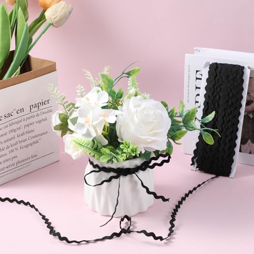 Rick Rack Trim for Sewing, 5 mm 27 Yards Black Wave Bending Fringe RIC Rac Trim Woven Lace Ribbon for Sewing Clothes Dress DIY Crafts Gift Wrapping Wedding Christmas Party Home Decor