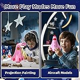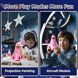 Kids Drawing Projector for Tracing Set: The kids tracing projector for drawing kit comes with 9 pcs discs boasting 54 projected image patterns, 1 projector drawing machine, 1 sketcher book and 1 drawing book. Encourage kids to unleash imagination and creativity to paint with different colors. Learning Drawing Toys for Kids: This trace and draw projector can cultivate kids drawing skills and color from an early age. Kids can easily set up and switch between different patterns and color-copy images, use their imagination to perfect the picture, explore different colors and textures, and learn to draw, doodle, and paint while playing. Ideal Gifts for Kids Ages 4-8: This funny projector drawing machine comes with a mini bendable astronaut toy that will make playtime more fun. It's the perfect gift for 3 4 5 6 7 8 year old boys girls artists on Christmas, birthday parties, Children's Day and holidays. Multifunctional Drawing Projector for Kids: The kids trace and draw projector comes with 54 different images such as animals and fruits that will serve as their guide into painting. And when the projector is switched off, it is a model airplane, kids can push the airplane toy with the wheel on the back. Parent-child Relationship Enhancement: The kids art set will help you teach your kids to learn to draw or other painting theories and build interaction between parents and children through playing with toys.