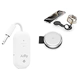 GO WIRELESS, ANYWHERE – AirFly Pro 2 transforms any headphone jack into a Bluetooth 5.3 transmitter or receiver. Stream audio from airplane screens, gym TVs, or gaming consoles to your AirPods, Sony or other wireless headphones. Flip the switch to receive mode and play music from your phone through your car or boat’s AUX port—no wires, no limits. Compact and Travel-Ready - The ButterFly 2 in 1 charging station is the size of an AirPods Pro case, making it perfect for world travel. It includes a USB-C cable, USB-C power adapter, four international plug adapters and a travel bag, ensuring you can charge your iPhone, iPhone Pro, Apple Watch or AirPods conveniently, wherever you go. PAIR TWO HEADPHONES – AirFly Pro 2 supports dual pairing, allowing two sets of Bluetooth headphones to connect at once. Dedicated pairing buttons make it simple to add a second pair of wireless headphones. Perfect for sharing movies on an iPad, music, or videogames on flights, road trips, or at home. Enjoy crystal-clear audio together, wire-free! Elegant Design - Crafted with an anodized aluminum shell and layered with luxurious vegan leather, the ButterFly charger matches the color and curvature of your MacBook. The braided USB-C cable adds to its sophisticated look, making it a stylish accessory for any setting. SUPERIOR AUDIO QUALITY – With Bluetooth 5.3 and aptX HD Adaptive support, AirFly Pro 2 ensures a stable, high-quality connection for an immersive listening experience. Quick-access buttons controls let you adjust sound or mute the volume instantly. Enjoy low-latency audio when watching movies or gaming, with rich, detailed sound in every beat. Versatile Charging - This Apple charging station doubles as a hands-free display stand for your iPhone, allowing you to stream shows, join video chats, or use StandBy Mode at your hotel desk. The magnetic Watch charger can be tilted vertically for Nightstand Mode, offering added convenience. OVER 25+ HOURS OF BATTERY LIFE – AirFly Pro 2 stays compact and efficient by skipping the unneeded display, maximizing battery life for extended listening on flights, road trips, and workouts. Enjoy more playtime and fewer charges with the best battery life in its class! Multi-Device Compatibility - The ButterFly charger is designed to charge your iPhone and Watch or AirPods, providing a complete charging solution for your Apple devices. Its compact design and included accessories make it a must-have for frequent travelers. MORE THAN A TRAVEL ESSENTIAL – Connect effortlessly to Apple AirPods, Beats, Sony, wireless earbuds and any Bluetooth headphones. Whether you’re watching in-flight entertainment, hitting the gym, or upgrading your classic stereo, AirFly Pro 2 delivers wireless freedom anywhere you go. Small enough to easily fit into your tech pouch or carry-on pocket. Durable and Protective - Made from high-quality anodized aluminum and vegan leather, the ButterFly charger not only looks great but also protects your devices while charging. Its sturdy construction ensures it can withstand the rigors of travel, keeping your devices safe and charged on the go.