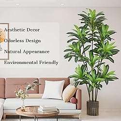 Realistic Appearance & Touch: The 7ft faux dracaena tree features 171 vivid leaves & 9 Heads, 6 realistic branches. Artificial plants indoor crafted with high-quality materials, feel soft, clear vein details, trunk mimics the texture of real dracaena plant, creating an instant tropical oasis in any space Personalized Design & Durable: The 84" dracaena artificial plant is crafted for extended, long-term use. The branches and leaves feature built-in steel wires—flexible enough to easily bend and shape to your liking. Tall artificial plants indoor staying evergreen year-round, brings a fresh, natural ambiance to any space Versatile Decoration: Our faux plants indoor suitable for multiple scenarios, Decorations for home indoor living room bedroom,porch,office and even commercial places like Cafe, shopping mall,hotels,restaurants creating a tropical atmosphere anywhere. Neutral design matches modern, Nordic or minimalist decor Low Maintenance: This realistic tall fake dracaena plant require no watering, pruning, or sunlight, Free your hands and enjoy the beauty of nature.Fill the bottom of the pot with cement to increase stability,No need to worry about spillage Easy to Install & Adjustable: Large 7 feet artificial plant easy to install - no specialized tools or skills required for quick assembly. Simply insert branches and leaves into designated holes in the trunk, then adjust angles to achieve the desired shape