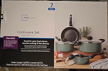 - Transform your kitchen with this essential 7-piece cookware set that covers all your basic cooking needs. This comprehensive collection includes pots and pans in various sizes, perfect for everything from simmering sauces to sautéing vegetables. The set features durable construction for reliable everyday cooking, while the practical design makes it ideal for both novice cooks and seasoned home chefs. Each piece is designed with convenience in mind, featuring comfortable handles for easy maneuvering and lids that help lock in flavor. Whether you're outfitting your first kitchen or upgrading your current cookware, this versatile set provides the fundamental pieces needed to prepare delicious meals. The non-stick surface makes cooking and cleanup a breeze, while the sturdy construction ensures even heat distribution for consistent cooking results. Perfect for daily use, this cookware set helps you create everything from quick weeknight dinners to elaborate weekend feasts.