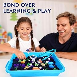 - Launch into a Mess-Free Galactic Learning Adventure!Discover the ultimate space-themed sensory play experience! Our bin is filled with soft, colorful polyester pom poms—a clean, no-mess alternative to kinetic sand. Perfect for indoor play, it encourages tactile exploration and is ideal for calming sensory activities.Explore the Solar System & Boost DevelopmentKids love digging out the 8 detailed planets toys and matching them to the star map. It’s a hands-on STEM science kit that makes learning fun! This educational activity also builds fine motor skills and hand-eye coordination as children use the tools to scoop and sort.The Perfect Gift for Young ExplorersAn unforgettable birthday or Christmas gift for boys and girls ages 3+. Its portable design makes it a great travel toy for toddlers, perfect for play at home, daycare, or on the go.