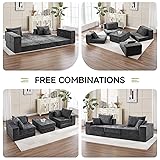 Cloud-Like Comfort: Sink into the plush, breathable chenille fabric filled with high-resilience foam that provides exceptional softness and support. Whether sitting or lying down, the ergonomic design offers cloud-like comfort perfect for relaxing, napping, or a full night's sleep. Customizable Layouts, 7+ Styles: This modular floor sofa includes 4 seats, 2 ottomans, and 4 pillows—all modular and freely configurable. Easily create a 2 seater love seat, L-shape, chaise, sofa bed, or more to adapt to your space and needs for leisure, entertaining, or overnight guests. Premium Material & Non-Slip Base: The boneless couch is crafted with skin-friendly chenille and high-density foam for lasting comfort and durability. The non-slip bottom ensures stability and safety during use, whether as separate pieces or combined into a larger configuration. Space-Saving Design: The sectional couch is perfect for compact living areas, this versatile cloud sofa maximizes your space by transforming effortlessly from a cozy couch to a spacious bed or lounge setup, ideal for apartments, dorms, studios, and multipurpose rooms. No Assembly Needed: This living room couch is delivered compressed in one box—simply unbox, allow 48-72 hours to expand, and enjoy. No tools or complicated setup required for immediate use.