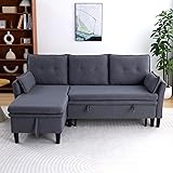 ODOLAR 78" L Shaped Sleeper Sofa Bed with Storage Chaise,Sectional Sleeper Sofa with Pull Out Sofa Couch Bed for Apartment, Bedroom, Living Room, (Dark Grey)