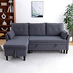 Versatile Convertible Design:This oversized sofa chaise effortlessly transforms from a stylish lounger into a spacious sleeper, perfect for hosting guests or maximizing space in compact apartments. The smooth transition mechanism requires minimal effort—ideal for daily use and unexpected overnight stays. Hidden Storage:A large under-seat storage compartment keeps your living area tidy and organized. Perfect for stowing blankets, pillows, seasonal clothing, kids’ toys, or entertainment essentials—all while maintaining a sleek, clutter-free appearance. Enhanced Comfort & Support:Features extra-thick, high-resilience foam cushions over a solid wood frame, offering superior comfort and lasting durability. The sturdy legs provide reliable support and hold up to 500 lbs, ensuring safety and stability for everyday use. Suitable for Multiple Scenarios:Ideal for studios, living rooms, or guest bedrooms, this sleeper sofa bed optimizes limited space. accommodates two adults comfortably for movie nights, while the quick-conversion design offers an extra sleeping spot for visitors. Quick & Easy Assembly:Designed for hassle-free setup with detailed instructions and all hardware included.