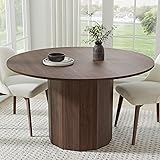 Casaphoria 52" Round Dining Table, Modern Wood Kitchen Table with Cylinder Polygonal Base for Living Room & Dining Room, Easy Assembly Farmhouse Furniture for 4-6, Walnut