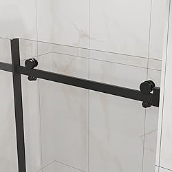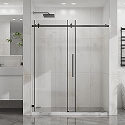 Goodyo 60" W x 72" H Sliding Shower Door, Frameless Sleek Glass Shower Door, 1/4" (6mm) Thick Tempered Clear Glass with Easy-Clean Coating, Stainless Steel Hardware, Matte Black