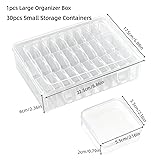 You will receive 31-Piece Organizer Set, 1 large outer box + 30small inner boxesenough to meet your various storage needs Clear container boxes are made of high quality PP plastic, which is durability, They are also smooth to touch, bringing you good use experience You can sort and sort different items with these bead accessory organizers,the transparent design allows you to see the contents at a glance, saving you time searching Each clear box has a hinged lid, has good sealing effect,which can prevent your items from being contaminated by dust and dirt, and also prevent items from falling Storage box is suitable for organizing are suitable for diverse small items, such as crafts, sequins, buttons, nails, nuts,bolts and more, More than storage ,They also can Personalize the clear boxes with markers, stickers, or labels to match your style or project