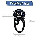 Analog-Digital Display: This clip-on fob watch shows you the time in two ways to meet your different needs. It is easy to read even in a dark environment. Cool Design: A black background with blue numbers and white watch hands forms a strong contrast. We use a plastic case instead of a metal case to reduce the watch weight. Therefore, it will not be a bundle when you clip it on your belt or bags. Multi-functional Watch: Date, Week, second, alarm, compass, analog digital display, clip-on buckle, all these functions make this watch more convenient to use. Suitable for Various Sports: The carabiner watch can be hung on your belt and bags. It is convenient for nursing, cleaning, hiking, skiing, and other activities that cannot wear a wristwatch. Ideal Gift: 1PC clip on fob watch for men women comes with a gift bag. It is a perfect gift for yourself, friends, colleagues, students, coworkers, etc. on Christmas, Birthday, Mothers Day, Fathers Day, Graduation, Nurses Day