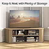 - VERTOXIA Corner TV Stand 43 Inch , Mid Century Corner Entertainment Center with Sliding Tambour Door, Media Console Table with 2 Layers Storage, Fluted TV Stand for Living Room, Bedroom, Oslo Oak