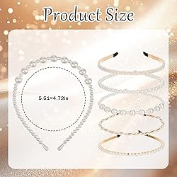 - Specifications:Name: Pearl Headbands for WomenColor: White, GoldMaterial: ABS Plastic + Zinc Alloy + PolyesterFunction: DecorativeDimensions: 5.51 × 4.72 inches / 14 × 12 cmPackaging Dimensions: 18 × 15 × 2 cmPackaging Method: BagGross Weight: 77 g Packing Contents: 5 Pearl Headbands for Women per package Discover the elegance and versatility of our pearl headbands for women, designed to enhance any hairstyle with a touch of sophistication. Crafted from high-quality ABS plastic, zinc alloy, and polyester, these white pearl headbands are perfect for both casual and formal occasions. Each set includes five unique styles, ensuring you have the perfect accessory for every event. Our pearl headbands for women are adorned with artificial pearls and rhinestones, creating a lustrous appearance that mimics real pearls. The sturdy alloy frame ensures durability, while the non-slip design keeps the headbands securely in place throughout the day. Whether you're attending a wedding, party, or simply enjoying a day out, these white pearl headbands for women will complement your look beautifully. Designed with comfort in mind, these pearl headbands for girls feature smooth edges and soft fabric ends, protecting your ears from discomfort during extended wear. The flexible design allows for easy adjustment, accommodating various head sizes without pinching or causing pain. Perfect for gifting, these bridal hair hoops are ideal for birthdays, anniversaries, Valentine's Day, and other special occasions. The elegant design of these white faux pearl bridal hair hoops makes them suitable for brides, bridesmaids, and flower girls, adding a touch of charm and unity to any wedding ceremony. Enhance your accessory collection with these versatile pearl headbands, suitable for daily wear, photography sessions, and festive celebrations. Embrace the timeless beauty of pearls and elevate your style with these exquisite hairbands.