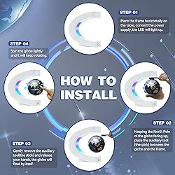 HIGH TECH - The globe uses magnetic levitation technology to float and spin quietly in mid-air. Its smooth, silent rotation instantly draws attention, making it a fun conversation piece and a relaxing way to explore the world from your sofa. BRIGHT & ELEGANT WHITE FINISH - The floating globe features a rare white frame with sleek, minimalist lines. The clean, elegant look blends perfectly with modern décor, while the white finish enhances the LED glow, making the globe brighter and more eye-catching in low light. PRENUM QUALITY - The electronically controlled magnetic system and frame utilize high-precision transmission technology, ensuring clear, durable, and fade-resistant text and graphics. The magnetic levitation floating globe serves as an educational tool, promoting parent-child interaction and stimulating children's curiosity about geography and physics. EFFORTLESS SETUP - Includes an installation stick tool for easy setup. Keep the globe with its North Pole facing upwards and place the stick tool between the globe and the frame. Soon, you'll witness the amazing levitation. Gently rotate the globe with your fingers; a quiet 360-degree rotation lasts for 15-25 minutes. AWESOME GIFT - White complements any home decor style, making it an ideal choice for an office desk, living room, or study. Flagest levitating globe light is a wonderful gift for tech enthusiasts, business owners, men and women, boys and girls.