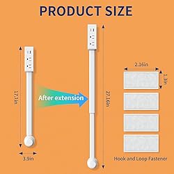 - Upgrade your charging experience with this Extendable Electrical Outlet Extender Stick, designed to make hard-to-reach outlets instantly accessible. The extender expands from 17 to 27 inches and features a 180° rotating base, allowing flexible positioning—whether vertical, horizontal, or angled—to perfectly fit your space. This all-in-one charging hub is equipped with 2 AC outlets plus USB-A and USB-C ports (5V/2.4A smart output), letting you power multiple devices at once, from smartphones and tablets to laptops and small appliances. With a slim and extendable design, it’s the ideal solution for outlets hidden behind couches, beds, nightstands, desks, or entertainment centers. Installation is effortless—just plug and use. No tools, drilling, or wiring required. Strong Velcro strips provide secure, damage-free attachment to walls, furniture, or floors, ensuring stability without mess or holes. Built with safety in mind, this ETL-listed outlet extender includes overload protection, surge protection, and fire-resistant housing for reliable and worry-free use. Perfect for homes, offices, dorm rooms, and apartments, it keeps your power needs organized and within reach. Make charging simpler, safer, and smarter with this extendable power outlet extender stick—the ultimate solution for maximizing your space and powering all your devices.