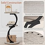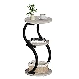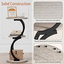 [S-Shaped, Modern & Stylish Design] - This small side table features rustic brown textured wood top and black metal frame, the industrial-style accent table enhances any living space from the living room to the bedroom. Its simple yet sophisticated design seamlessly integrates with any decor and style. [Ideal For Small Spaces] - Measuring 11.8"D x 11.8"W x 23.6"H, this compact end table takes up minimal space while providing impressive storage capacity. Its sleek and space-saving design fits perfectly into any small corner. If you want a little side table or end table for a limited space, this is the perfect solution. [Multifunctional 3 Tier] - This 3-tier vintage side table gives you plenty of space for placing small plants, books, coffee, and decorative items, perfectly combining style and functionality. It can be used as a nightstand, sofa table, bedside table, or coffee table. Its lightweight design allows for easy movement between rooms. Let you fully enjoy your leisure time! [Stable and Sturdy] - This round side table features high-quality waterproof particleboard and heavy-duty steel pipes, the top can support up to 110 pounds, and the middle tier can support up to 90 pounds. The bottom has added foot pads to improve stability and maintain balance. This metal end table is a lovely addition of furniture for any small space. [Easy to Assemble] - With a simple structure, clearly labeled parts, and clear instructions, you can complete the installation of the wood side table in just 6 steps—quick and hassle-free, all by yourself.