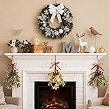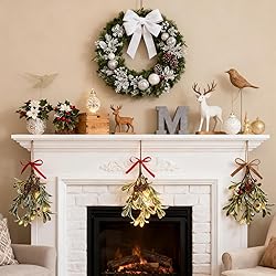 Kiss Under the Mistletoe: Elevate your holiday ambiance with a timeless symbol of affection and festive cheer. Our Christmas mistletoe kissing ornament is not just a decoration; It is an invitation to create heartwarming memories. Hang it in a doorway to inspire spontaneous moments of love and laughter, beautifully conveying your warmest wishes to family and friends while filling your space with an authentic Christmas atmosphere that brings everyone together Durable and Reliable: Experience the perfect blend of nature’s charm and artificial durability. Each Xmas mistletoe hanging ornament is crafted from premium PE and alloy stems, featuring pale green leaves and a vibrant mix of glossy white and red berries that closely mimic real mistletoe. This elaborate decoration is adorned with natural rope and a decorative red bow, offering a rustic touch and a lifelike appearance Widely Holiday Decorations: Discover endless possibilities for your seasonal styling. Our glitter mistletoe picks measure 10.62 inches in length and are the ideal size for a multitude of projects, both indoors and outdoors. Effortlessly enhance wreaths, centerpieces, garlands, mantels, stair railings, and entryways. Perfect for adding festive flair to door frames, windows, classrooms, office parties, or eaves, ensuring your entire home feels cohesive and merry Classic Christmas Design: Transform any room into a holiday showcase with these stunningly realistic berry picks. Their delicate branches and rich berry clusters provide texture and a pop of classic Christmas color like green, white, and red to your existing decor. They arrive ready to instantly infuse your space with a touch of natural elegance and lively celebration, making them a flawless choice for banquet tables, fireplace displays, or as a photo-worthy backdrop Reusable Artificial Mistletoe Decorations: Unlike fresh mistletoe that droops and drops, our artificial picks are built to last, retaining their beautiful color and shape through countless seasons. Simply store them carefully after the holidays and enjoy their flawless beauty again, saving you money on annual replacements while ensuring your festive traditions are always beautifully supported