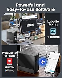 𝐔ser-𝐅riendly 𝐒oftware: Are you frustrated with complex label editing software and unreliable Bluetooth connections? The P780BT Label Maker comes with the easy-to-use Labelife software for PC and the Print Master app for Smart Phones. This ensures a seamless setup and printing experience, making it the ideal solution for effortless label creation 𝐎mini-𝐂ompatible 𝐁luetooth: Unlike other label makers that only support Bluetooth connections with phones, the P780BT offers high-compatibility Bluetooth connectivity with both smartphones and computers (also supports USB connection to computers) 𝐄fficient and 𝐏ractical 𝐃esign: The P780BT Label Maker enhances efficiency by simplifying charging and data connectivity with just one Type-C cable, eliminating the need for cumbersome USB and AC adapters. This not only streamlines your workflow but also results in a cleaner workspace. The label maker features a matte texture body, boasting a more premium look while ensuring durability 𝐃urable 𝐏ower, 𝐀lways 𝐑eady: The P780BT is built to last with its 1200 mAh battery, providing up to 4 hours of continuous printing on a single charge - enough to cover 118 meters of labels. It recharges in just 2 hours and can be used with a power bank for portable, on-the-spot labeling without running out of juice 𝐁ig 𝐋abels for 𝐁ig 𝐑esults: Ideal for making a big labels, the P780BT Label Maker is compatible with labels up to 1 inch (24 mm) wide, in addition to standard 9, 12, and 18 mm labels. The capability to print larger labels is perfect for packaging, shipping, and organization tasks where a bigger label makes a difference by enhancing visibility and readability