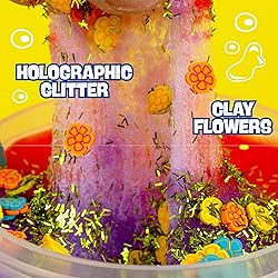 - The SpongeBob SquarePants SLIMYGLOOP Mix’Ems – Patrick’s Triple Gooberberry Surprise is a swirl of colorful, squishy, sparkly fun straight from Bikini Bottom! Inside the resealable jar, you’ll find a dreamy mix of super fluffy pink and purple cloud slime — light as sea foam and super satisfying to stretch and squish. It even smells like sherbert, just like Patrick’s all-time favorite treat! Sprinkle in shimmering green holographic glitter, toss in polymer flower slices for a satisfying crunch, and crown your creation with a rubber Krabby Patty charm. Every mix changes the texture, sound, and sparkle of your slime, so your undersea masterpiece is never the same twice. It’s silly, it’s squishy, and totally Silly Sea Star approved! This slime makes any day the Best Day Ever — perfect for any SpongeBob fan age 6 and up.