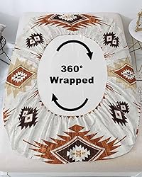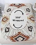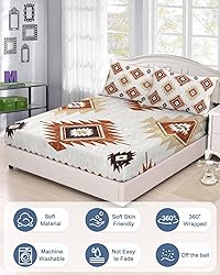 Ruian Store Bedding Full Size Fitted Sheets Fit 5"-16" Deep Pocket Mattress,Brown Aztec Ethnic Art Soft Bottom Sheet Abstract Geometric Color Block Fitted Sheet Bed Set with Pillow Case