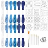 - 37 Pcs Sashiko Kit Sashiko Needles and Thread Embroidery Stencils Sashiko Patterns for Sewing Hand Quilting and Mending Cotton Supplies Features: Good material: Our sewing thread is made of cotton material, needle is golden and durable and embroidery stencil is made from plastic composite fiberboard; the sashiko kit embodies the blend of strength and dexterity needed for hand sewing projects. Great Design: The embroidery thread has 6 colors to choose from white to dark blue, from light to dark according to your needs; the geometric embroidery patterns are classic, ideal for adding intricate stitching details to your quilting and embroidery. Specifications: Color: as pictures shown Material: cotton Size: as pictures shown Package includes: 37 x Sashiko Kit Note: Manual measurement, please allow slight errors on size. The color may exist a slight difference due to different screen displays.