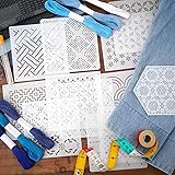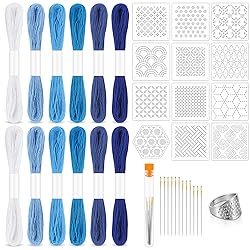 What you get: each package includes 12 sashiko thread in 6 colors, 12 embroidery sashiko needles in 3 sizes with tube packaging, 12 sashiko stencils and 1 sashiko thimble, which can meet your various sewing needs Proper size: our sashiko patterns measure about 4.7 x 4.7 inch/12 x 12 cm and embroidery thread measures about 21.9 yd/20 m, offering the appropriate size for both beginner and advanced embroidery enthusiasts Good material: our sewing thread is made of cotton material, needle is golden and durable and embroidery stencil is made from plastic composite fiberboard; the sashiko kit embodies the blend of strength and dexterity needed for hand sewing projects Great Design: the embroidery thread has 6 colors to choose from white to dark blue, from light to dark according to your needs; the geometric embroidery patterns are classic, ideal for adding intricate stitching details to your quilting and embroidery Wide Usages: the sashiko kit can be applied to your pants, shirts, shoes, bags, hats, scarves, dresses and other fabrics, and can also be used to repair holes in clothing, designed to cater to embroidery lovers, friends and family