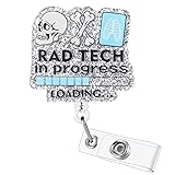 Rad Tech in Progress Funny Badge Reel | Retractable ID Card Badge Holder | Radiologic Technician Badge Buddy | Acrylic X-Tray Medical Badge Clip | Radiologic Technologists Gifts