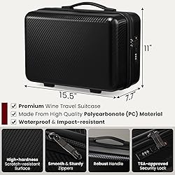 - Wine Travel Suitcase for 4 Standard Wine Bottles - 360-degree All-around Protection Bottle Luggage for Airplane, Car, Outdoor Carrying - Impact Resist, Sturdy, Waterproof Wine Bottle Protector Case Safety - with TSA Approved Lock