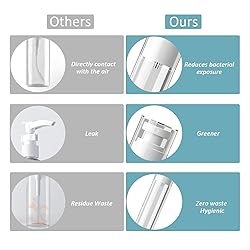 Airless Pump Design: The 4-pack set of 50ml (1.7oz) airless pump bottles are designed to keep your liquids fresh and contamination-free. The airless technology prevents air exposure, maintaining the quality of your lotions, serums, and other cosmetics. Leak-Proof & Travel-Friendly: Each bottle is equipped with a secure, leak-proof pump, making it ideal for travel or on-the-go use. No more messy spills in your bag or suitcase. Durable & Reusable: Made from high-quality, clear PET plastic, these bottles are not only lightweight but also durable, ensuring long-lasting use. They are easily refillable for repeated use, reducing waste. Multipurpose: Perfect for lotions, face creams, sunscreens, serums, essential oils, and more. Ideal for both personal use and professional settings. Sleek & Practical: The transparent design allows you to easily see the contents, and the airless pump keeps your product free from exposure to air, extending its shelf life.