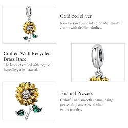 Exquisite Sunflower Design: Inspired by classic artistry, this charm features a vibrant sunflower with brilliant zirconia accents, crafted using transparent oil-drip technique for lasting color and shine. Premium Material: Made from recycled copper with a platinum plating finish, ensuring a luxurious look and durable wear. The charm is nickel-free and hypoallergenic for comfortable everyday use. Versatile Compatibility: Designed to fit most charm bracelets and necklaces (0.45cm aperture), making it easy to personalize your favorite jewelry pieces. Thoughtful Gift Idea: Perfect as a gift for women, friends, or family members on birthdays, Mother’s Day, Valentine’s Day, or other special occasions. Elegant Size: Measuring 2.6 x 1.2cm, the charm offers a delicate yet noticeable presence, ideal for layering or wearing as a standalone pendant.