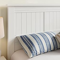 ComfIQ Serene Solid Wood Window-Pane Panel Headboard – Easy Assembly, Casual Coastal Style – Queen Size in White