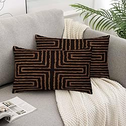 Orythyra Pouf Maze Tribal African Pillow Cover 12 X 20 Set of 2 Labyrinth Linear Doodle Brain Mind Game Pillow Cases Standard Size Protectors with Zipper Decorative for Home Couch Sofa Bed Room