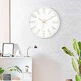 Foxtop Wall Clock 12 Inch Silent Non Ticking Battery Operated Round Wall Clock Modern Simple Style Clocks Decorative for Home Office Bedroom Kitchen School (White)