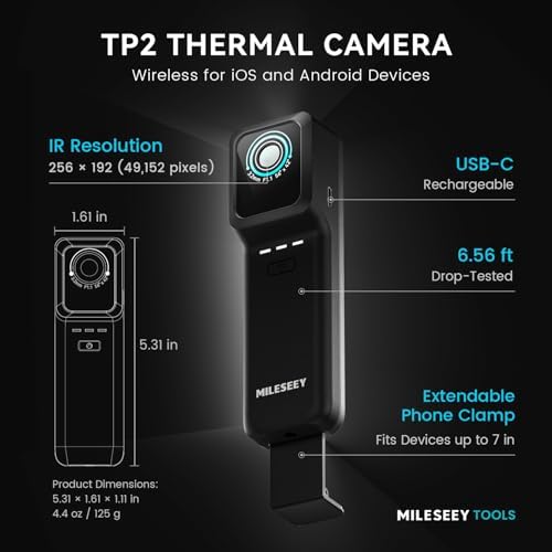 MiLESEEY TP2 Wireless Thermal Imaging Camera for All iPhone, iPad & Android Devices, 512×384 Super Resolution Infrared Camera, 25Hz Detachable Thermal Imager for Electrical, Building, HVAC Detection