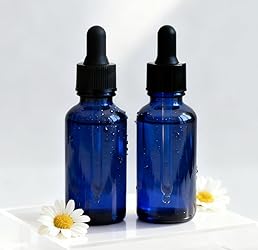Dropper Bottles Blue 1 oz (30ml) Empty Thick Glass 2 Pack - With Leakproof Black Caps, For Storage, Travel, Essential Oils, Tinctures