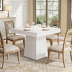 - Tribesigns Square Dining Table for 4, 31.5-Inch Small Kitchen Table with Sturdy Pedestal Base, Farmhouse Dinner Table for Dining Room, Living Room, Kitchen, White