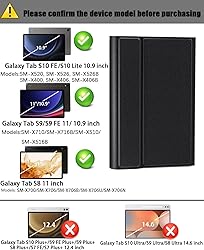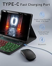 ⌨【Model Compatibility】Designed ONLY for Samsung Galaxy Tab S10 Lite / S10 FE / S8 / S9 / S9 FE 10. 9-11 inch :Tab S10 Lite(SM-X400, SM-X406, SM-X406B) Tab S10FE(Model: SM-X520, SM-X526, SM-X526B) Tab S8 (Model: SM-X700 /X706 /X706B /X706U /X706N) Tab S9 (Model: SM-X710 /X716B) Tab S9 FE (10.9 inch) (Model: SM-X510 /X516B) Not compatible with other models. You can check the model number before purchasing to make sure you get the correct size tablet keyboard case. ⌨【Magnetically Detachable Rainbow Backlit Keyboard】Case for Samsung Galaxy Tab S10 Lite / S10 FE / S9 FE / S9 / S8 10.9-11 inch comes with a removable 7-color rainbow magnetic keyboard. The ultra-thin, lightweight magnetic keyboard attaches securely to the case, helping the tablet stand upright and turning it into a mini laptop in a second. Use the selectable backlight mode to choose your favorite color from 7 iridescent colors for smooth typing in the dark, even when working at night. ⌨【Adjustable Viewing Angles and Support for Pen】case supports 3 viewing angles and has anti-slip slots. Move the tablet forward or backward along the case to choose a suitable angle to use the tablet for writing, viewing, reading, drawing, etc. Built-in Pen holder makes it easy to carry the Pen with your device. (NOTE: Pen not included!). ⌨【Auto Sleep/Wake Function】The protective case has an automatic sleep/wake function to protect and save the battery life of your tablet. When the lid is opened, the tablet wakes up; when the lid is closed, the tablet goes to sleep. (NOTE: Tablet not included!). ⌨【Premium Protection】keyboard case for Samsung Galaxy Tab S10 Lite / S10 FE / S9 / S9 FE / S8 10.9-11 inch has full edge coverage and provides full 360° protection against scratches, bumps or dents, protecting your tablet from all kinds of dropping accidents. The inner layer provides cushioning with Honeycomb grid pattern, protects your tablet from overheating and increases its lifespan by more than 30%.