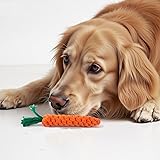 - Bring fun and dental care together with this Cotton Rope Dog or Cat Toy in Carrot Shape. Made from durable cotton fibers, this chew toy is designed to look like an orange carrot with green leaves, adding a playful touch to your pet’s toy collection. The braided rope texture helps clean teeth, massage gums, and reduce plaque and tartar buildup as your pet chews. Measuring 8.66 inches in length, it’s the perfect size for both dogs and cats to grab, chew, and carry around. Safe, non-toxic, and long-lasting, this carrot-shaped toy promotes healthy playtime while supporting your pet’s dental health. Carrot body length: 15 cm (5.91 in) Leaf whisker length: 7 cm (2.76 in) Note: Each carrot is hand-woven, so there may be a natural error in size of ±1cm.