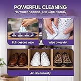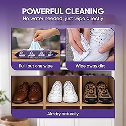 Powerful Instant Cleaner: Quickly removes dirt, grime, and scuffs from sneakers, cleats, sandals, shoes, boots, and everyday footwear. Perfect for restoring a fresh-out-of-the-box look in seconds — anytime, anywhere. Dual-Textured Cleaning Power: Designed with two functional surfaces — a smooth side for everyday gentle cleaning and a textured side for deeper scrubbing. Infused with extra cleaning agents to break down stubborn dirt and grime. Safe and effective for most shoe materials, including canvas, leather, rubber, suede, flyknit, mesh, fleece, nylon, knitted fabrics, and more. Extra Large & Convenient Pack: Each kick wipe measures 7 × 7 inches — 40% larger than standard shoe cleaning wipes. Resealable hard-lid pack keeps 70 wipes moist for long-lasting freshness at home or on the go. Safe on Colors & Finishes: Formulated for use on white shoes, colored sneakers, leather boots, and soles. Non-abrasive and residue-free to help maintain your shoe’s natural shine and texture. Great for your variety shoes like basketball shoes, tennis shoes, soccer shoes, hinking boots. No Water Needed, No Mess: Convenient dry-use formula cleans effectively without rinsing or additional tools. Leaves shoes clean and refreshed in seconds with minimal effort.