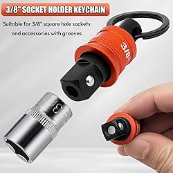 Heavy Duty Design: The Socket Holder is crafted from aluminum and steel for maximum durability and strength. It features a powerful ball lock buckle that can securely carry socket tools weighing up to 3.3lbs, ensuring the socket are less likely to fall Quick & Easy One-Handed Operation: Designed for efficiency, the push-back mechanism allows for fast insertion and release of sockets. Operate with one hand to quickly load or remove sockets, making it perfect for busy work environments Compact & Portable: Attach the socket holder key chain to your keyring, tool belt, or bag for easy access to multiple 3/8” socket. Perfect for on-the-go fixes and garage projects, making your tools always handy Package Included: This set includes 5pcs socket holders and a carabiner for easy attachment and transportation, sufficient quantity to meet your daily use. Perfect for organizing and accessing your sockets quickly Fit 3/8” Drive Standard Socket: This impact socket organizer keychain tool compatible with 3/8" square hole sockets and accessories with grooves. It's suitable for professionals such as contractors, builders, carpenters, and woodworkers, as well as DIY enthusiasts and maintenance professionals working in high-altitude operations