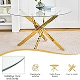 VAKTULS Round Glass Dining Table Set for 4, 36'' Small Circle Glass Kitchen Table with 4 Luxury Blue Gold Velvet Dining Chairs, 5-Piece Dining Room Table Set for Small Place(Gold Base)