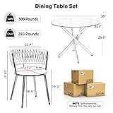 【A Striking Blend of Textures & Styles】Discover the perfect harmony of contemporary elegance and industrial charm. Our dining set combines a sleek blade-legged table with chairs featuring plush velvet upholstery, woven rope details, and sturdy straight metal legs. This intentional mix creates a dynamic, designer-inspired look for your space. 【Solid & Stable Blade Leg Table Base】The standout blade legs based on the table provide a robust foundation and a bold, modern aesthetic. Crafted from high-quality metal, it ensures remarkable stability during everyday use, making it the sturdy, stylish centerpiece your dining room deserves. 【Plush Comfort Meets Metal Durability】Each chair is designed for lasting comfort and support. The deep-seated, padded velvet cushion rests upon a frame of strong, straight metal legs, offering a perfect balance of softness and structure. The ergonomic design and added woven accents ensure comfort that lasts through any dinner party or family meal. 【Effortless Assembly & Maintenance】We've designed this set for your convenience. The table and chairs arrive with clear, straightforward instructions for a quick and easy setup. The premium velvet is also treated to be stain-resistant, making cleanup from spills simple and worry-free. 【Versatile for Any Dining Space】Whether your style is modern, industrial, or rustic glam, this set seamlessly adapts. The cohesive yet distinct designs of the table and chairs allow them to complement a wide range of decor. Create a captivating and functional dining area that is uniquely yours.
