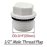 INCLUDE: 6PCS 1/2" PT male thread plugs MATERIAL QUALITY: Made from durable PPR (Polypropylene-Random) material that corrosion resistance, high strength, and less weight than fittings made from metal SPECIFICATIONS: Features a 1/2 inch PT male thread connection with outer hex design for easy installation and removal SECURE SEALING: Socket-style end cap design ensures tight connection and prevents leaks when properly installed INSTALLATION: Designed to create a tighter seal. Thread plug for use in non-pressure residential and commercial drain, waste, and vent sanitary systems