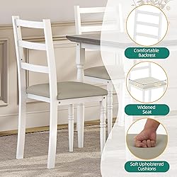 - DWVO 5-Piece Dining Table Set for 4, Kitchen Dining Room Table with Upholstered Chairs, Faux Leather Cushions, Modern Rectangular Dinner Table Set for Small Spaces & Apartment, White Grey