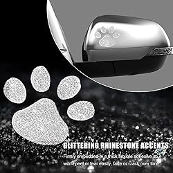 JNXIJ 2 PCS Bling Car Decals, Shiny Rhinestone Paw Print Decal with Self-Adhesive Backing, Glitter Crystal Sticker Automotive Window Decoration for Women Girls, Car Accessories