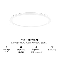 ADJUSTABLE WHITE 5-COLOR TEMPERATURES – Customize your lighting effortlessly with 5 preset color temperatures directly on the fixture or with a simple flip of the wall switch. From warm cozy tones to bright daylight, create the perfect ambiance for any space—living room, office, or commercial area, without needing additional smart devices or apps, giving you total control over your environment with convenience and flexibility. NIGHT LIGHT MODE FOR ADDED CONVENIENCE – The innovative Night Light mode provides a gentle, soft illumination for evenings or low-light areas. Simply toggle the switch off and on again to activate the warm, comforting glow. Perfect for hallways, bedrooms, nurseries, or any area requiring subtle illumination, it adds versatility without extra wiring or fixtures, enhancing safety and usability while maintaining energy efficiency. DIMMABLE AND ENERGY-EFFICIENT DESIGN – Save energy while enjoying customizable brightness. The dimmable feature lets you adjust the light intensity to suit tasks, moods, or time of day. Using advanced LED technology, this 11-inch panel consumes minimal energy compared to traditional lighting, reducing electricity costs while providing high-quality illumination. Ideal for homes, offices, schools, or commercial environments seeking both efficiency and performance. SLIM PROFILE WITH SLEEK, MODERN AESTHETIC – Designed with a low-profile, ultra-slim frame, this LED flat panel seamlessly integrates into ceilings for a clean, contemporary look. Interchangeable magnetic frames allow easy styling updates without tools, making it ideal for remodels or new installations. Its lightweight and unobtrusive design complement both modern and classic interiors, enhancing aesthetic appeal while maintaining functional lighting. RELIABLE QUALITY FOR EVERY SPACE – Feit Electric combines innovation with durability, delivering lighting you can trust. This flat panel light is designed for easy installation in a variety of settings including homes, offices, retail stores, and hospitality environments. Backed by Feit Electric’s commitment to long-lasting performance and customer satisfaction, it’s a dependable choice for versatile, high-quality illumination.