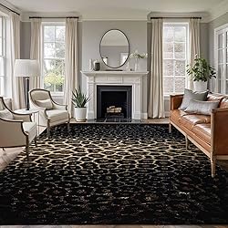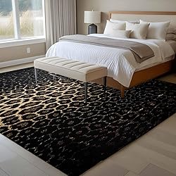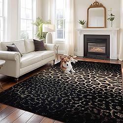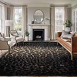 Large Area Rug 5'x8', Leopard Print Non-Slip Runner Carpet for Living Room/Bedroom/Office, Chic Abstract Black Brown Animals Texture Washable Rectangle Area Rugs Floor Mat for Kitchen/Dining Room