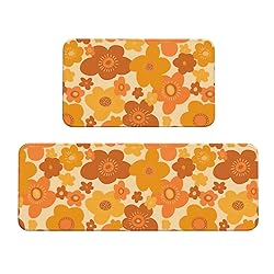ocpcrn 70s Retro Vintage Floral Pattern Kitchen Mats Set of 2, Home Decor Kitchen Rugs for Floor - 17x29 and 17x47 Inch