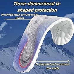 - U-Heel Design for Foot Stability: The U-shaped heel design ensures your feet stay properly aligned and reduces friction with your shoes. The elastic gel insert enhances shock absorption, while the constant temperature design keeps your feet warm and comfortable.plantar fasciitis relief ,arch support inserts women Versatile 4D Cloud Technology Sports Insoles: These insoles are suitable for all types of footwear, including casual shoes, work boots, sneakers, and hiking shoes. They provide excellent comfort and cushioning for everyday wear.plantar fasciitis relief ,arch support inserts women