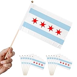 - Handheld Mini Small Chicago Flag 12 Piece 5 x 8 Inch Patriotic Holiday Yard Decorations with Safety Spear Top